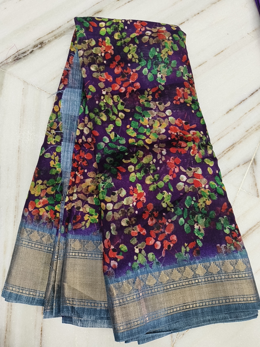 ✨ Dola Silk Saree with a length of 6.50 meters, paired with a matching blouse piece. Featuring a rich zari border and elegant floral & motif prints, this saree offers a graceful drape and timeless appeal—perfect for daily wear and special occasions.