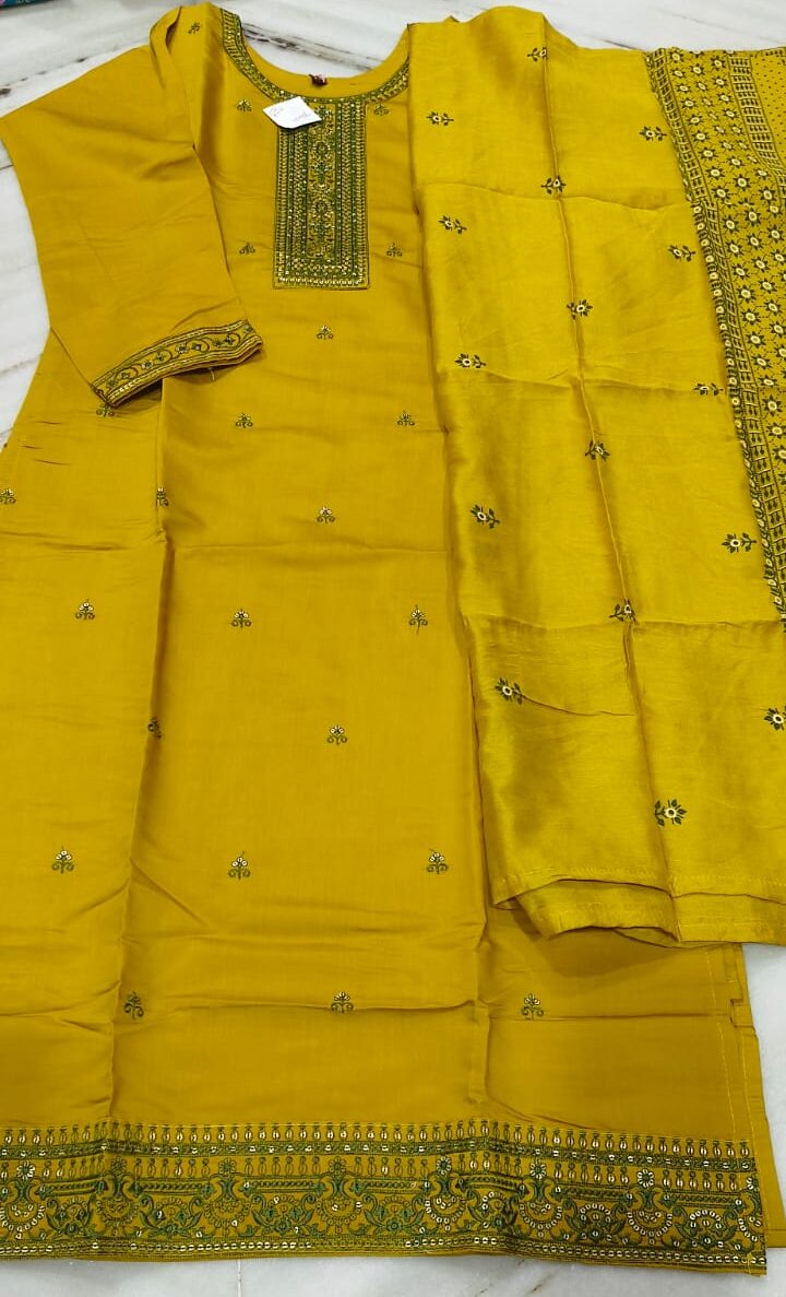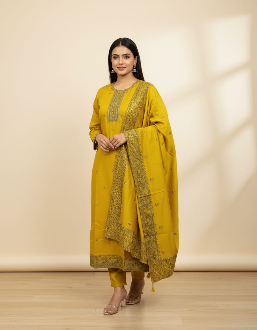 ✨ Mustard Yellow Embroidered Kurta Set with Dupatta